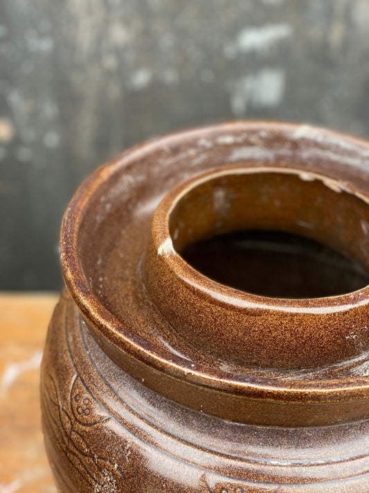 19th Century Brown Glaze Decorative Storage Pot (Kimchi)
