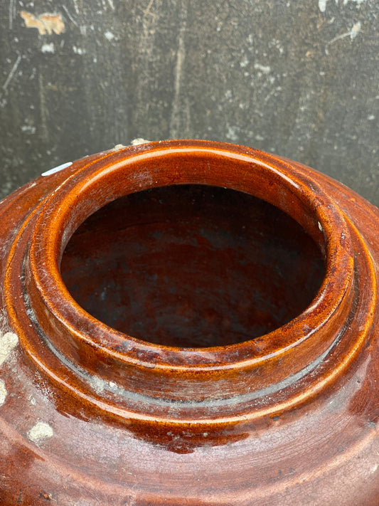 19th Century Brown Glaze Decorative Round Storage Pot (Ginger)