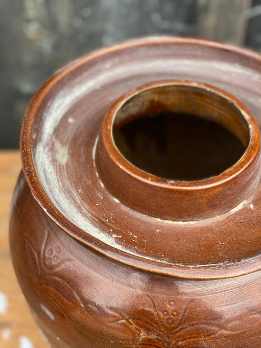 19th Century Brown Glaze Patterned Decorative Jar Kimchi