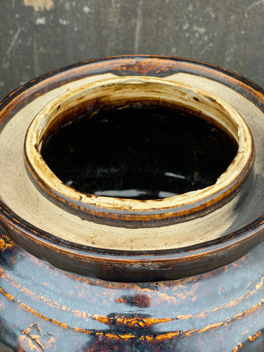 19th Century Brown Glaze 2 Tone Decorative Round Storage Pot (Ginger)