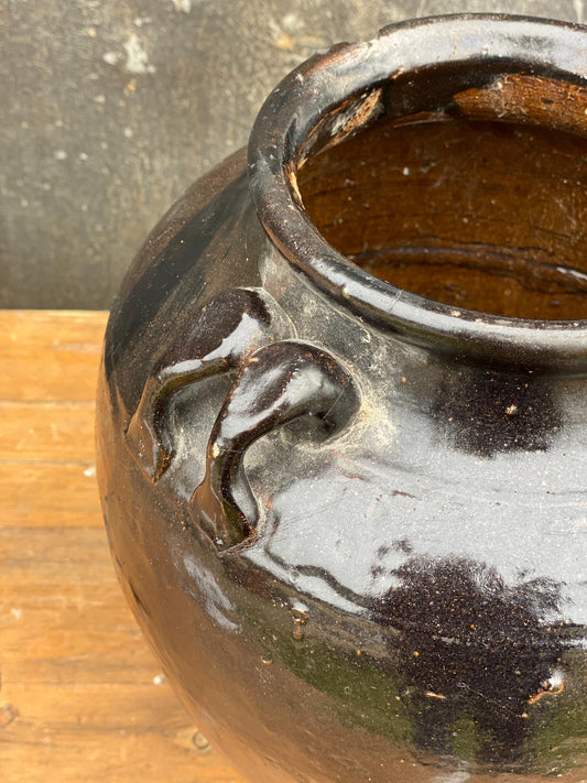 19th Century Brown Glaze Decorative Handled Storage Pot